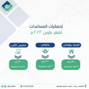 لجنة المساعدات تصرف ٨٨٠٠٠ ريال لعدد ٢١ أُسرة مستفيدة لشهر مارس