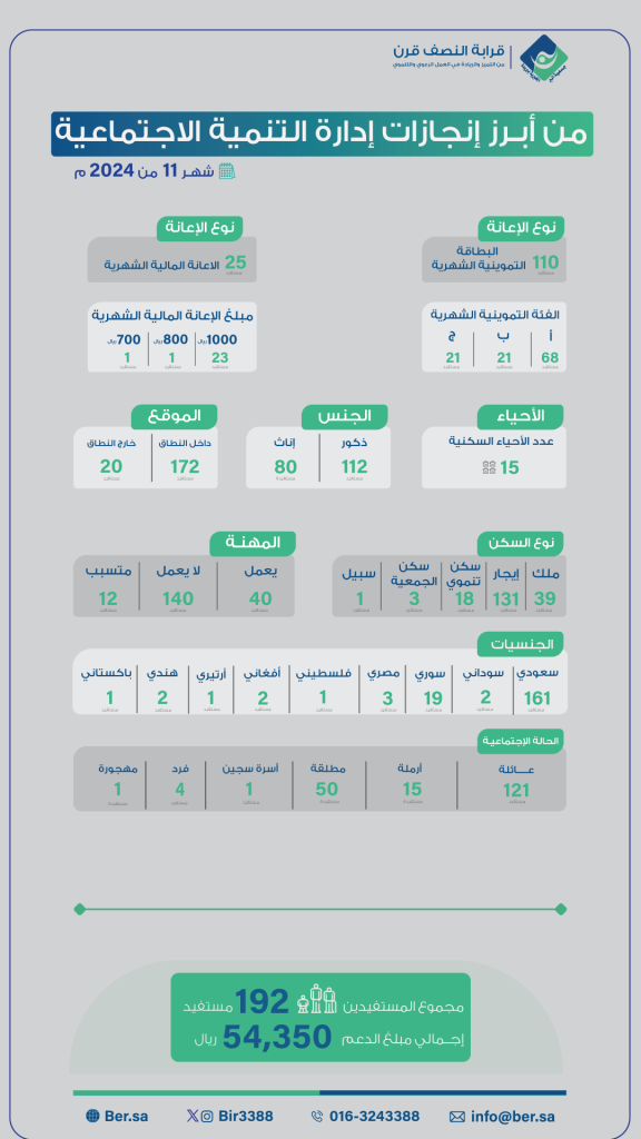 من أبرز إنجازات إدارة التنمية الاجتماعية في بر بريدة لشهر نوڤمبر 2024م