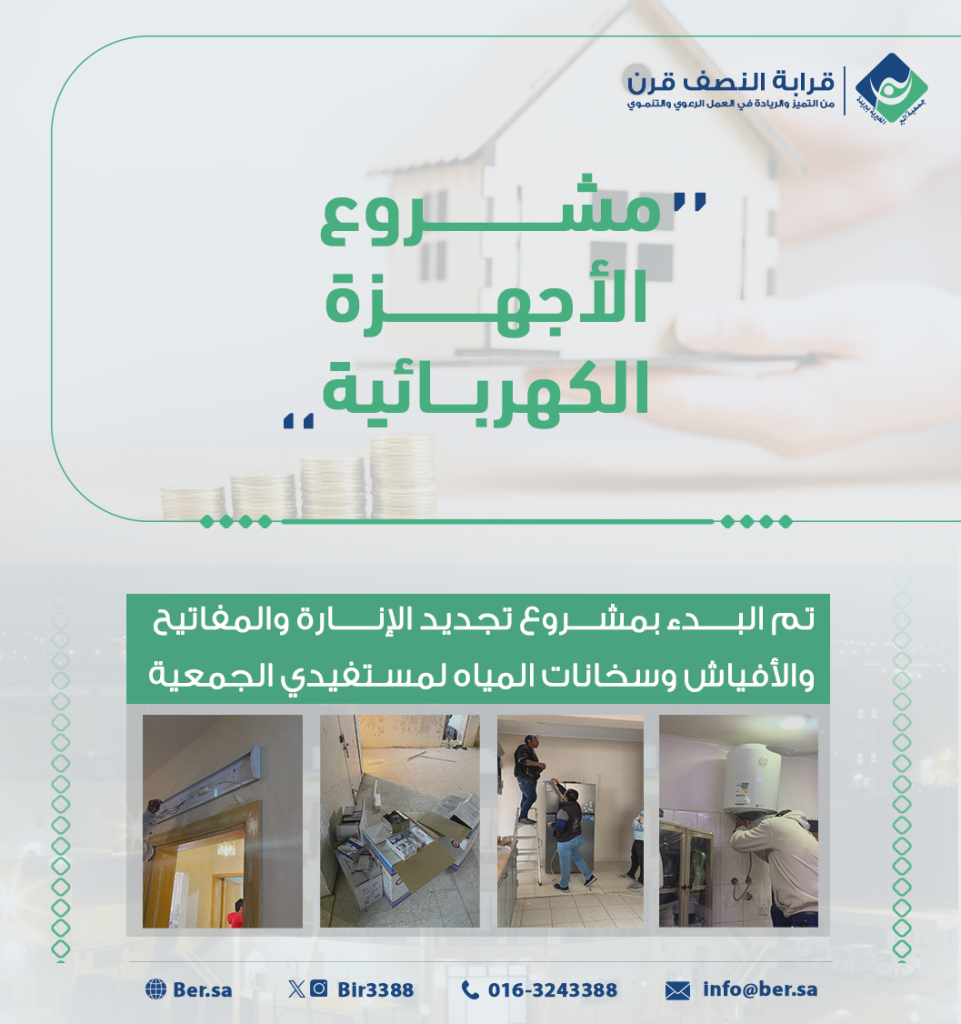 جمعية #بر_بريدة تبدأ بمشروع تجديد الإنارة والمفاتيح والأفياش وسخانات المياه لمستفيدي الجمعية.